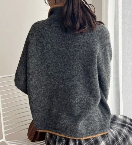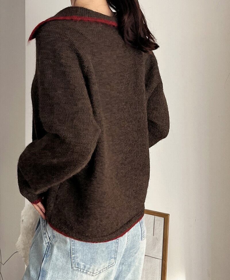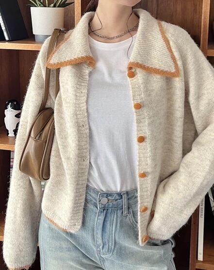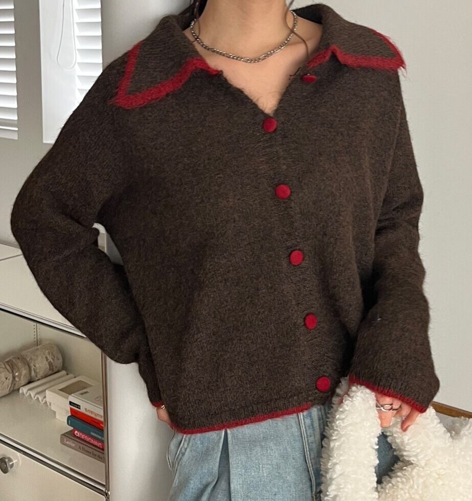 【ぶるち】1017 バイカラー襟付きニットカーディガン