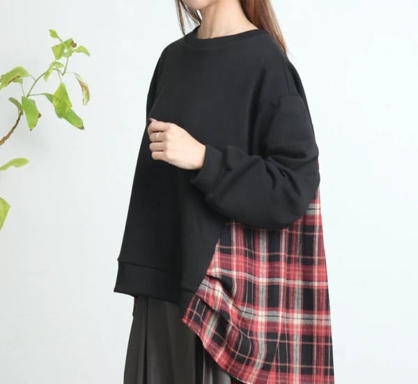 【ぶるち】1038 裏起毛×チェック柄配色切替プルオーバー