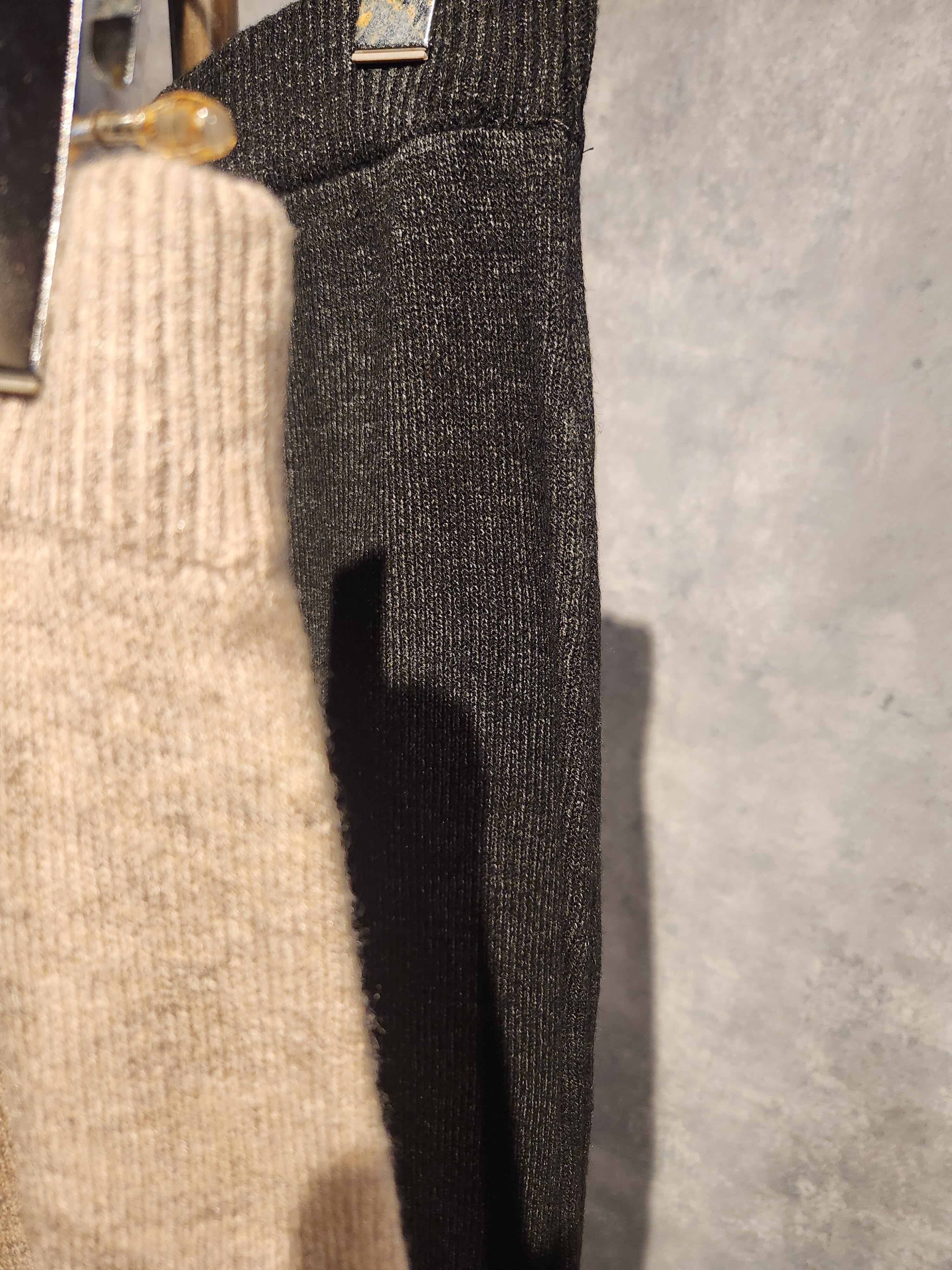 同素材のニットプルオーバーとのセットアップ風スタイルもおすすめ。