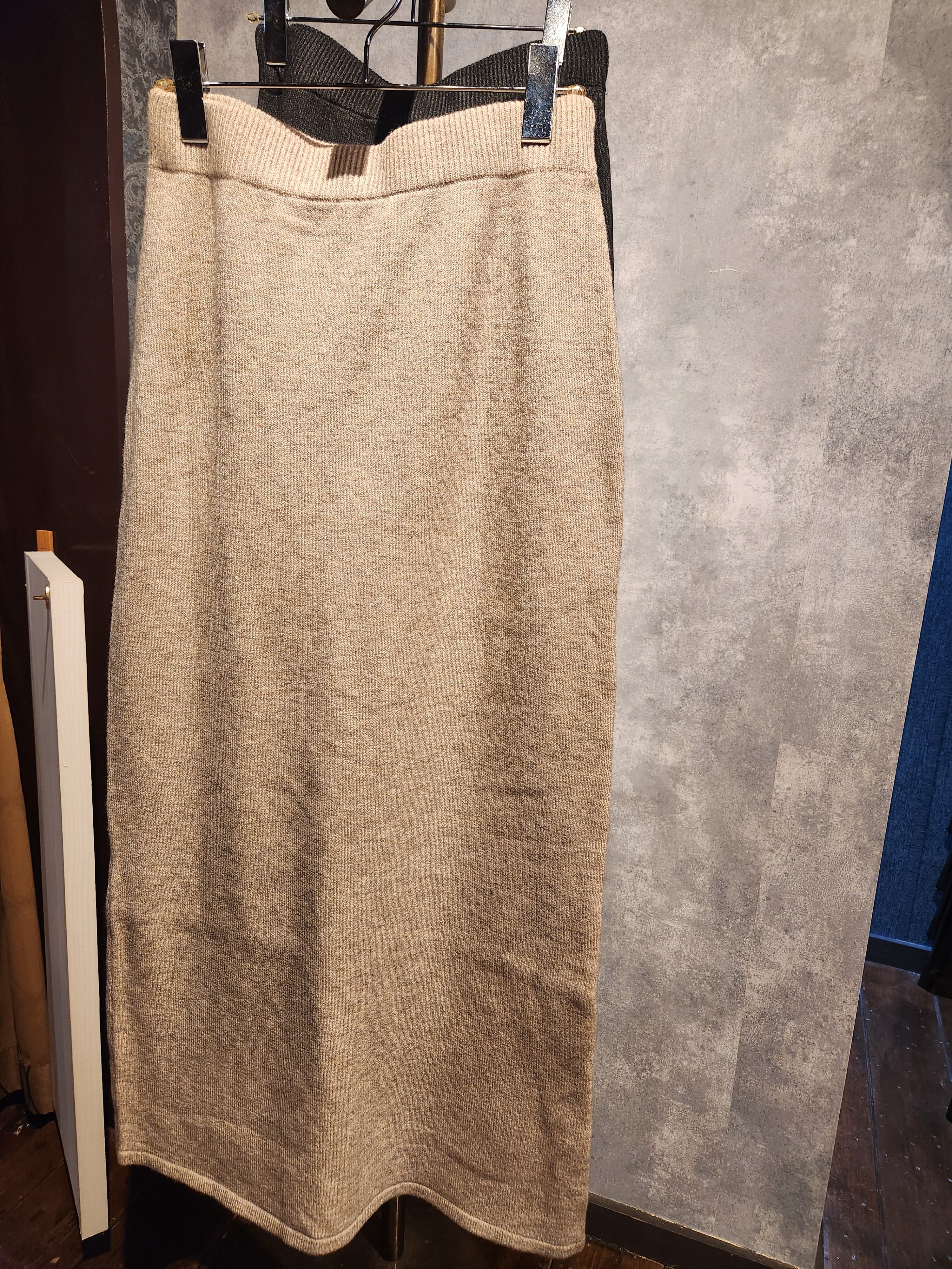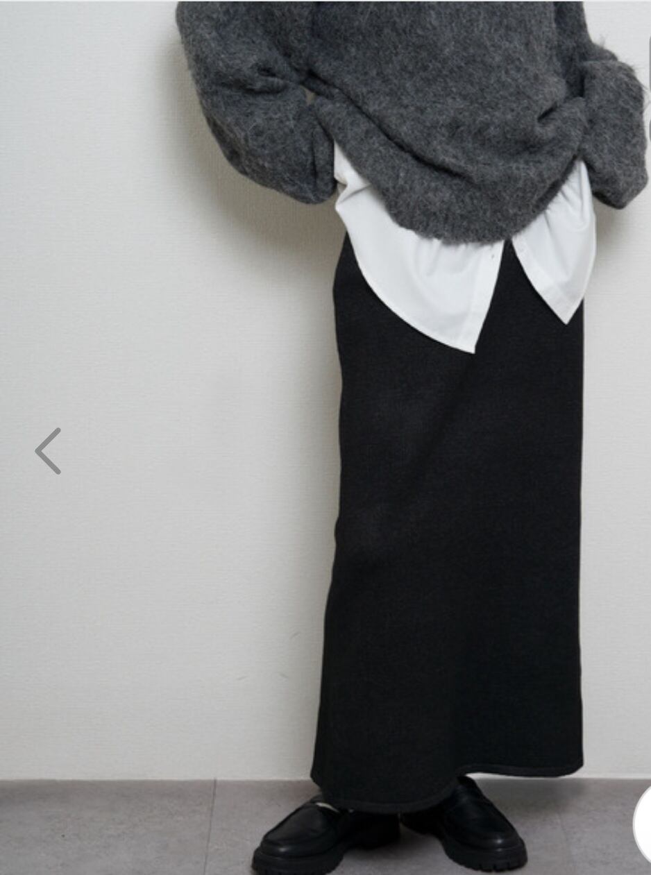 すっきりとしたシルエットで、大人の抜け感を演出するニットロングスカート。