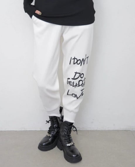 【ぶるち】1066 ロゴ刺繍春ニットジョガーパンツ