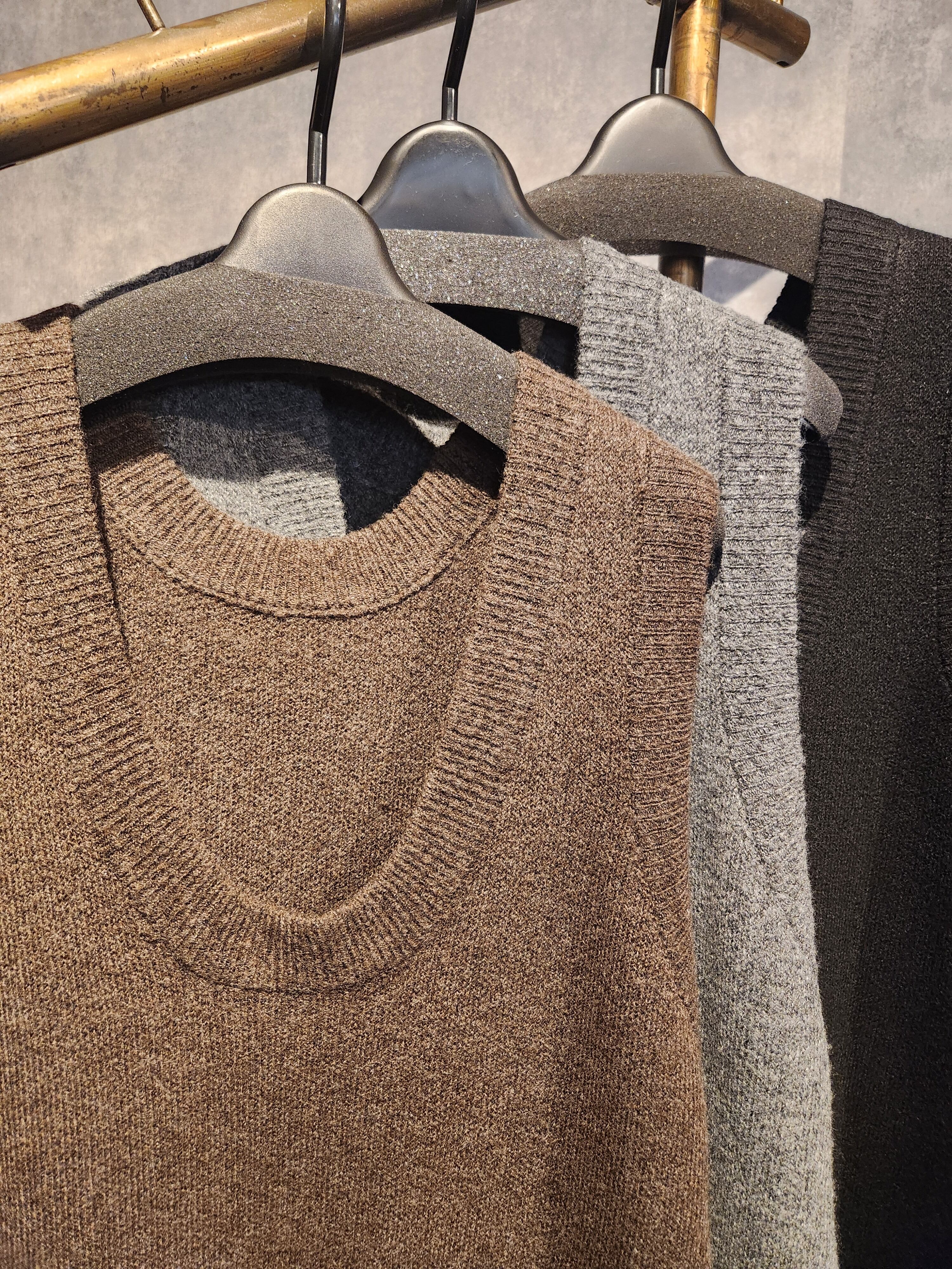 縦のラインを意識したシルエットで、レイヤードしても全体がもたつきにくいデザインです。