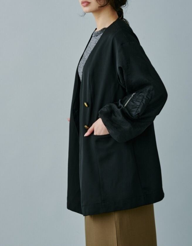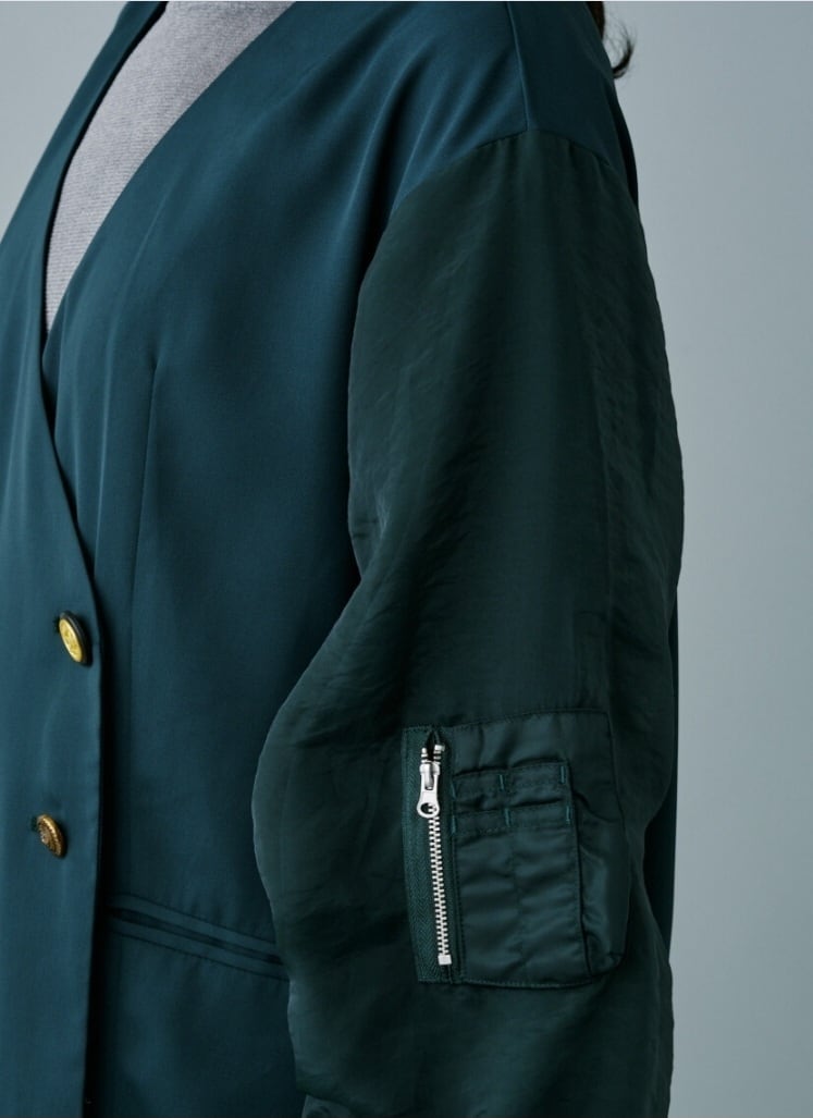 カジュアルなMA-1風なデティールと可愛さ溢れるオーガンジー素材のバルーンスリーブが