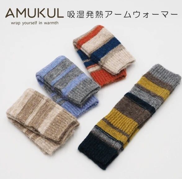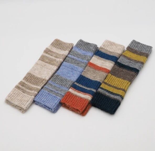 【ぶるち】1137 吸湿発熱 ウール混 ボーダー柄 ニット アームウォーマー