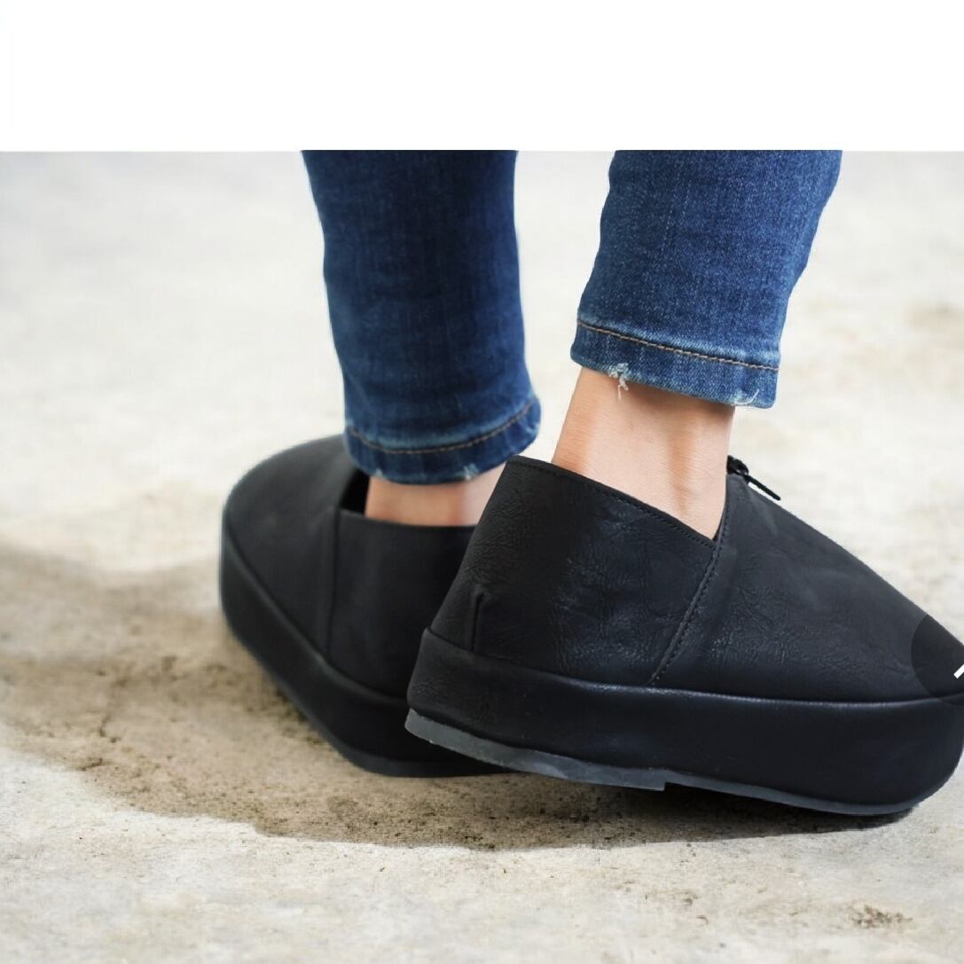 1.5cm斜めに下がったかかとで、自然と姿勢矯正してくれるスリッポン。