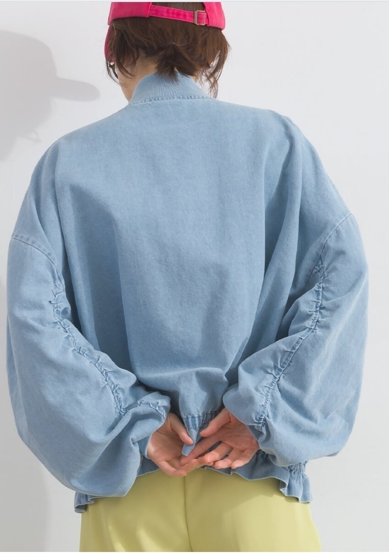 【ぶるち】1171 袖シャーリング 裾フリル ボリュームデニムブルゾン Gジャン