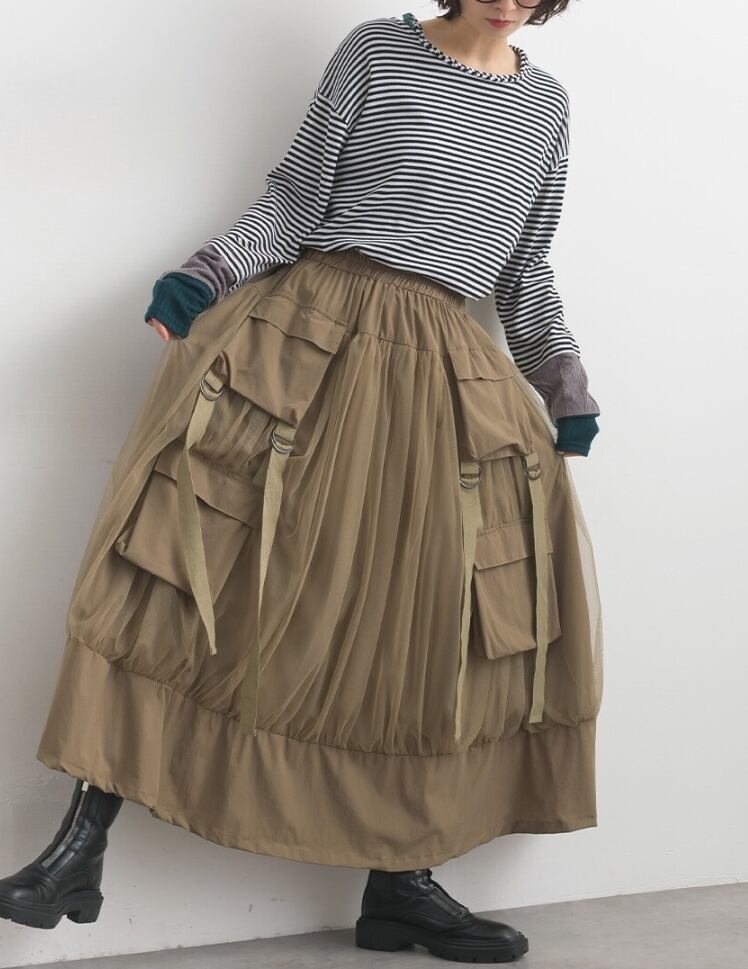 カーゴポケット×チュールの斬新レイヤードデザイン