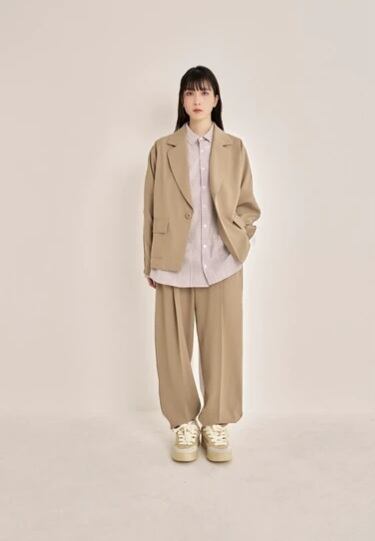 程よくゆったりとしたシルエットで、リラックス感がありながらも洗練された雰囲気を演出。