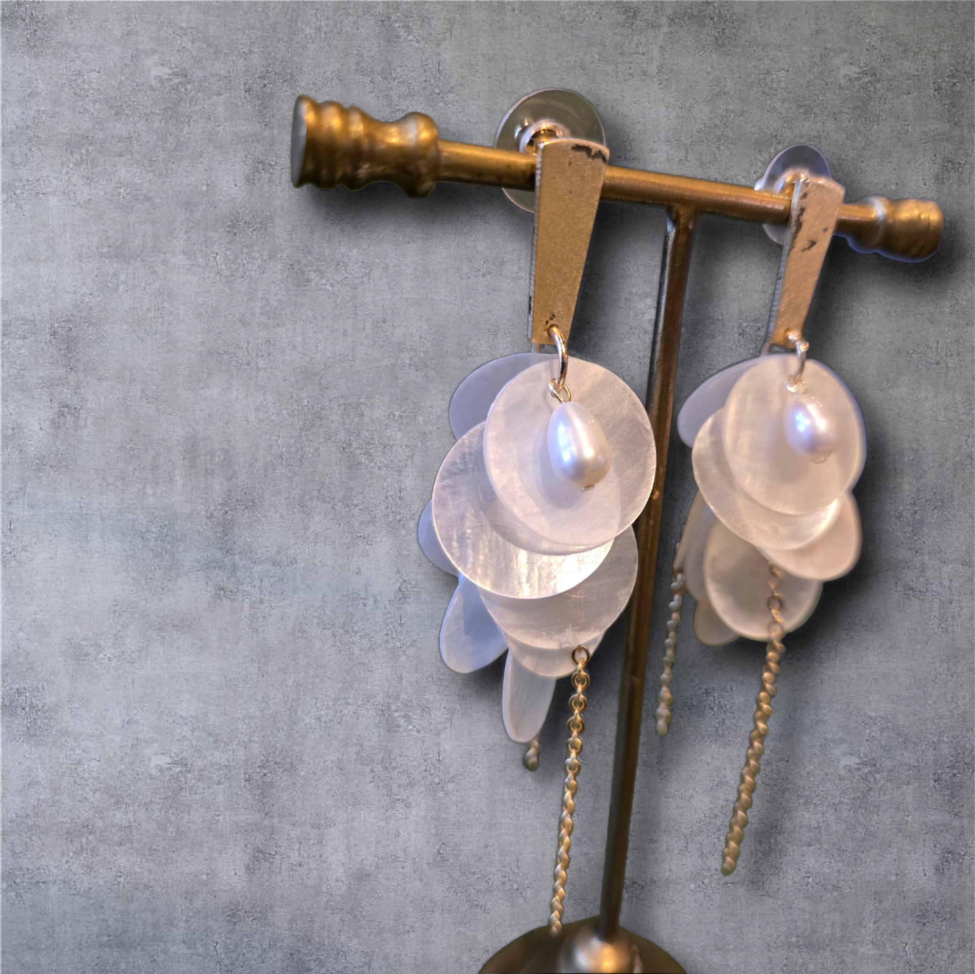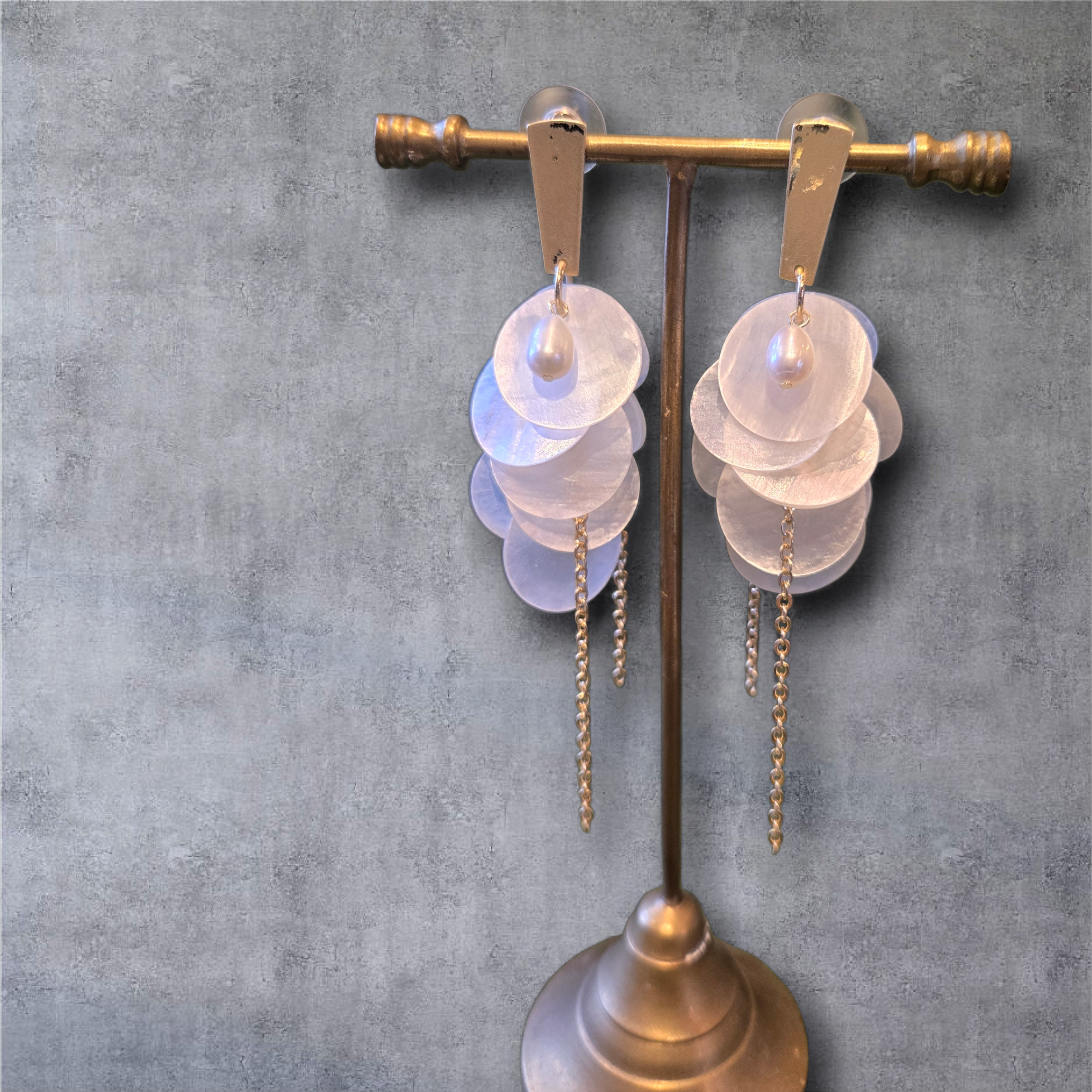 耳の横で軽く揺れる可愛いシェル風コインプレートが可愛い。