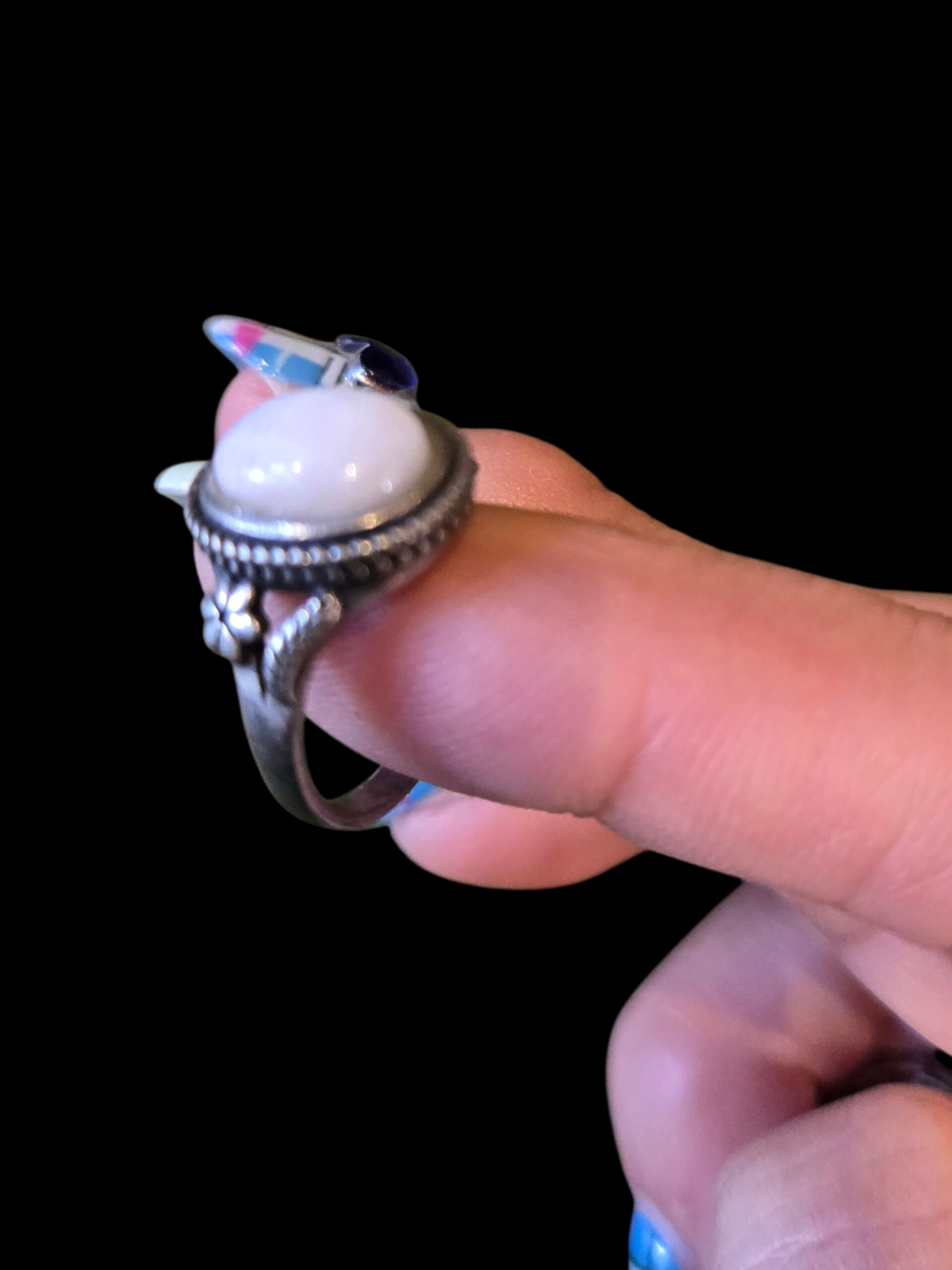 ラウンドの天然石ストーンが上品な癒しのヴィンテージリング。