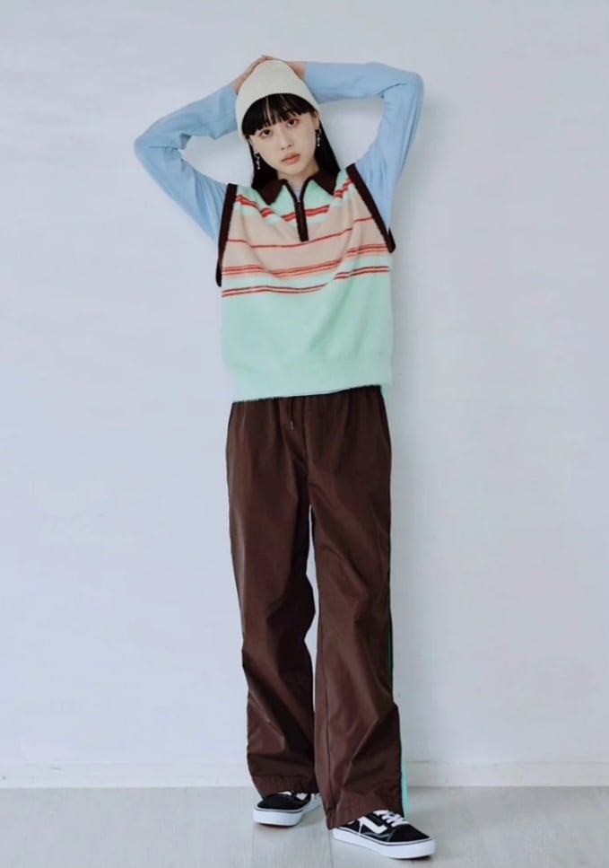 サイドの配色切替が印象的なトラックパンツ。