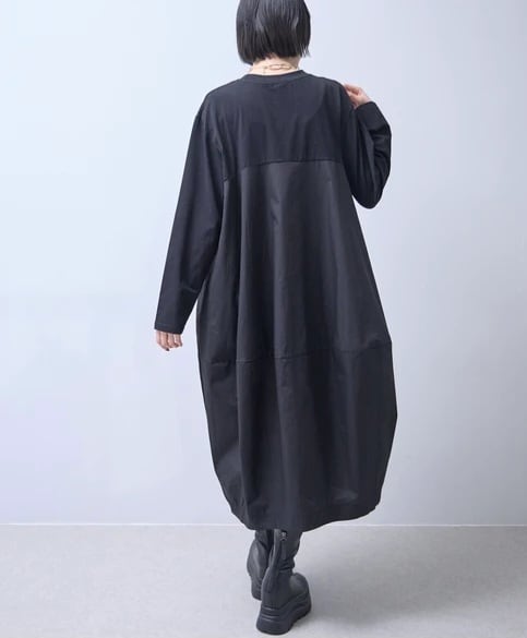 【ぶるち】1235 異素材切替 3Dコクーンドレープワンピース