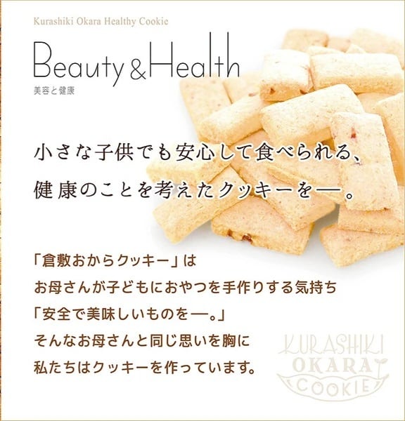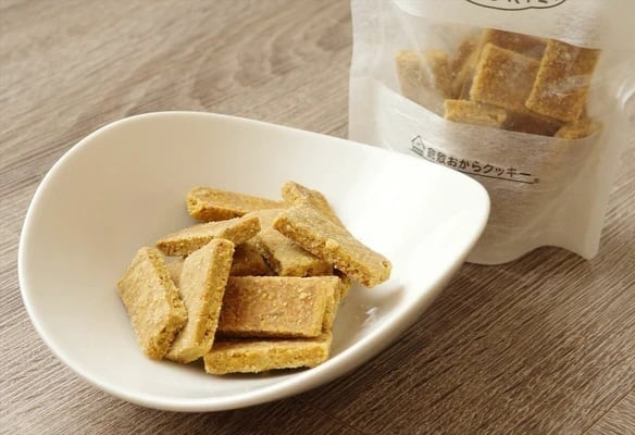 毎朝お豆腐屋さんで採れる100%国産大豆の新鮮な「生おから」を使用しています。生おからならではの優しい味わいとサクサクとした食感が特徴です。おからは低カロリーなのに、お腹で膨らむので満腹感があり、たんぱく質、カルシウム、食物繊維など栄養が豊富、栄養が偏りがちなダイエット食にも最適な嬉しい食材です。
