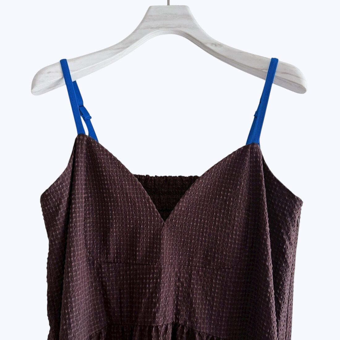かなチェック柄に配色肩紐が映えるキャミワンピース。