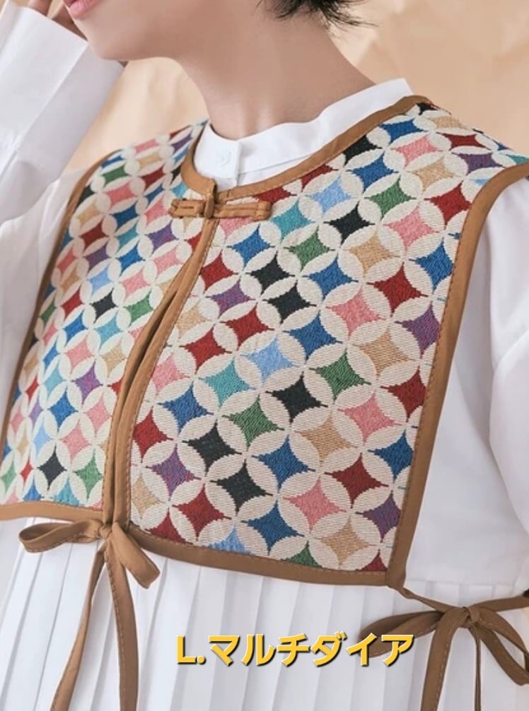 【ぶるち】1275 つけ襟風、色鮮やかなヴィンテージ風刺繍生地のビスチェベスト