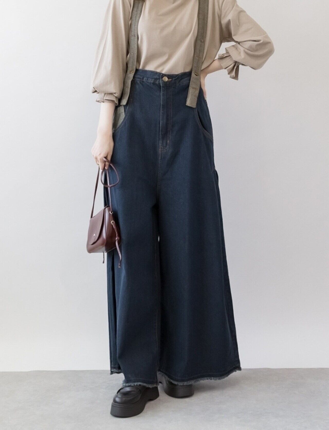 デニムの裏地をデザインポイントとしたデニムバギーハイウエストパンツ