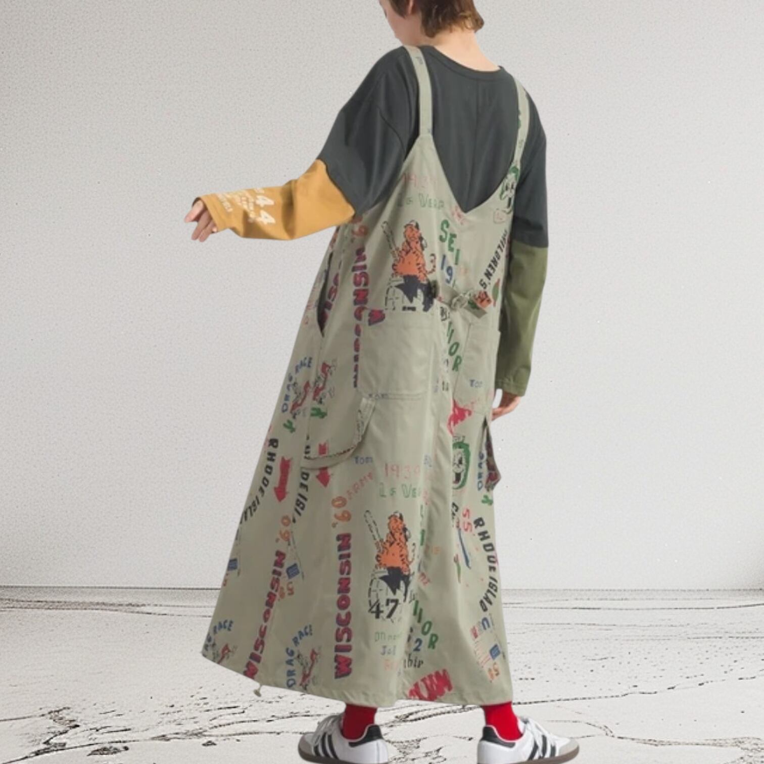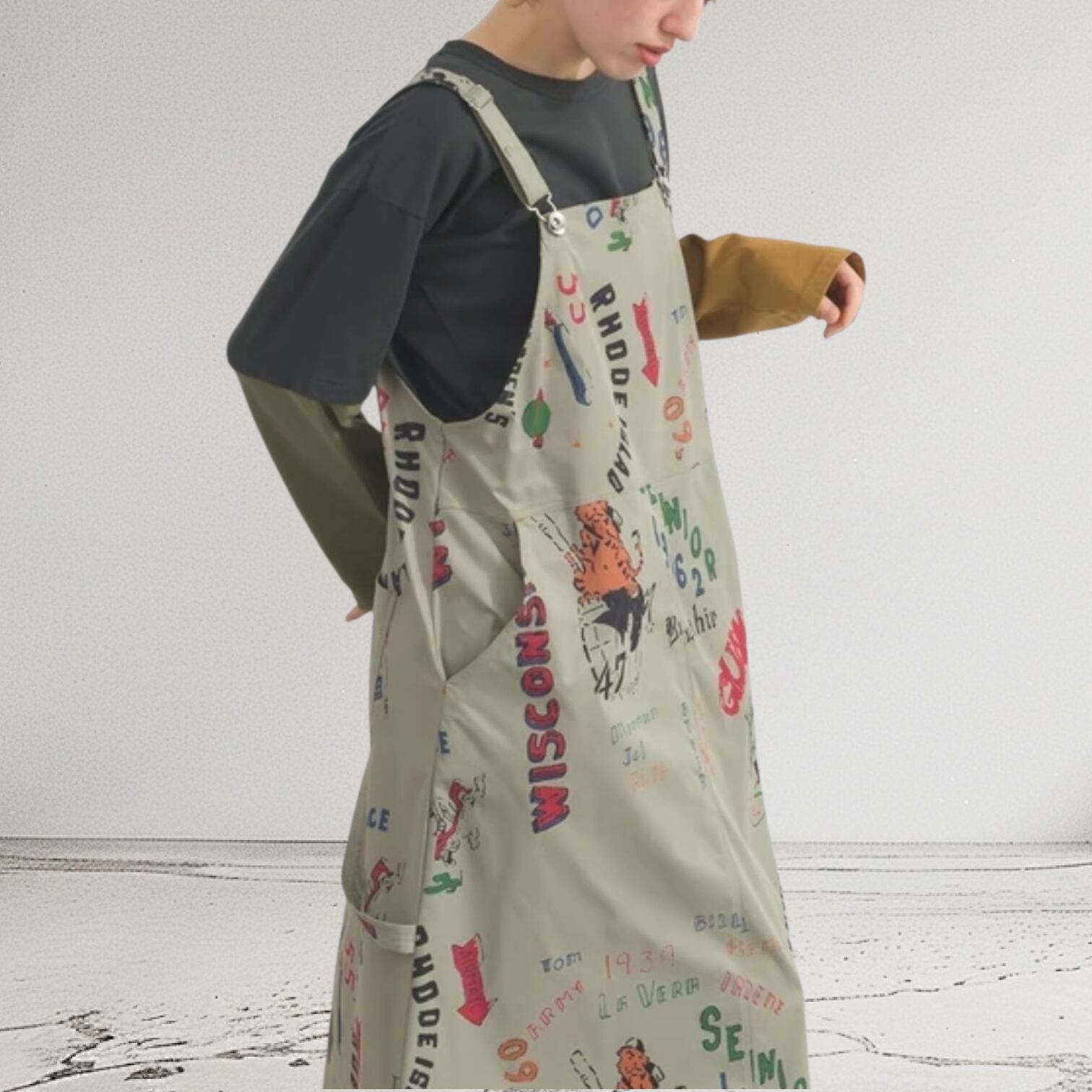 滑らかで高密度なソフトツイル生地をベースに、LIME.INCらしいヴィンテージライクな表情を追求した素材感が魅力です。程よい肉厚感がありながらも、驚くほどしなやかで落ち感のあるこの生地は、肌馴染みの良い天然素材の心地よさと、タフなワークウェアとしての強度を両立させています。生地表面には洗いたてのような自然なシワ感とムラ感を出す加工を施し、使い込まれた道具のような温もりある風合いを表現。さらに、サイドや切り替え部分には、アイコニックな手描き風のグラフィックプリントを施した別布をドッキングしており、ツイルの端正な表情と、プリント生地の遊び心ある質感が絶妙なコントラストを描きます。穿き込むほどにさらに柔らかさを増し、体の一部のように馴染んでいく、素材への深いこだわりが詰まった仕上がりです。