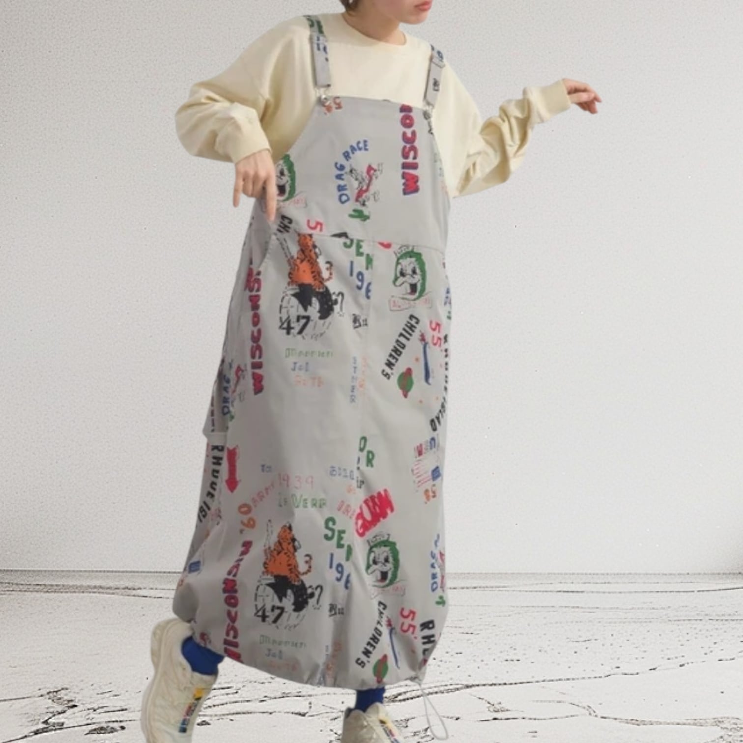 【ぶるち】#1283 ソフトツイル 総柄プリント 裾バルーン サロペットスカート