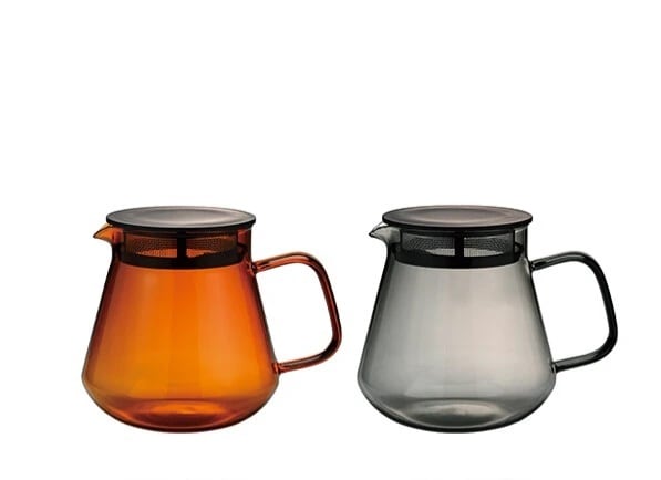 メッシュフィルター付きのフタがついたガラスサーバー。茶葉とお湯を入れてそのまま注げます。フタを外しドリッパーをのせてコーヒーサーバーとしてもご使用いただけます。