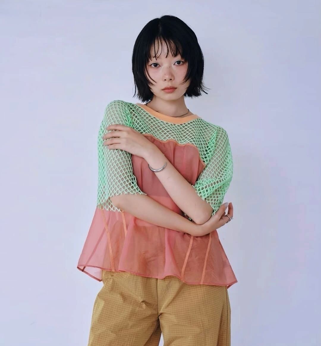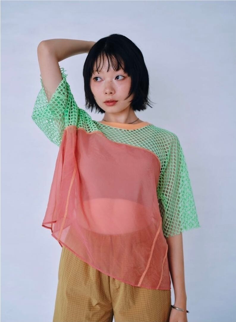 【ぶるち】HCAE カラーブロックシアーメッシュトップス