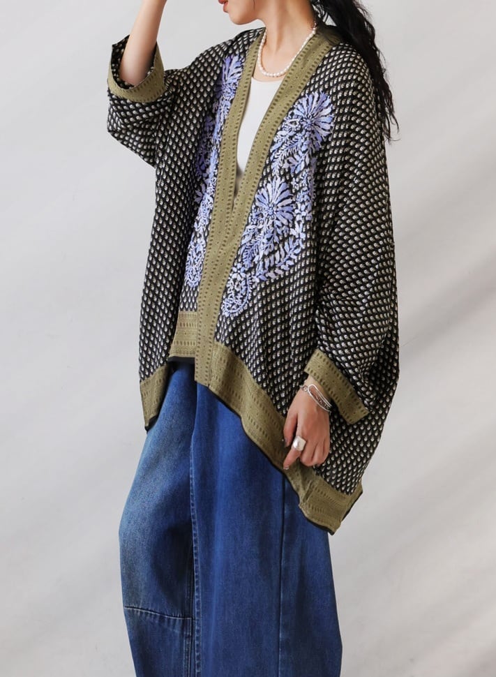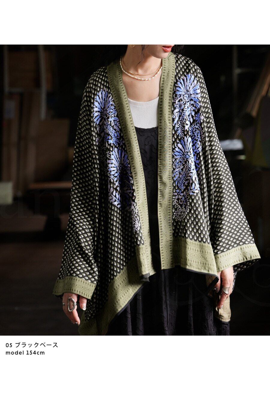 ちょっとしたお出かけにも、旅先のリラックススタイルにも活躍する、華やかで特別感のある羽織りです。