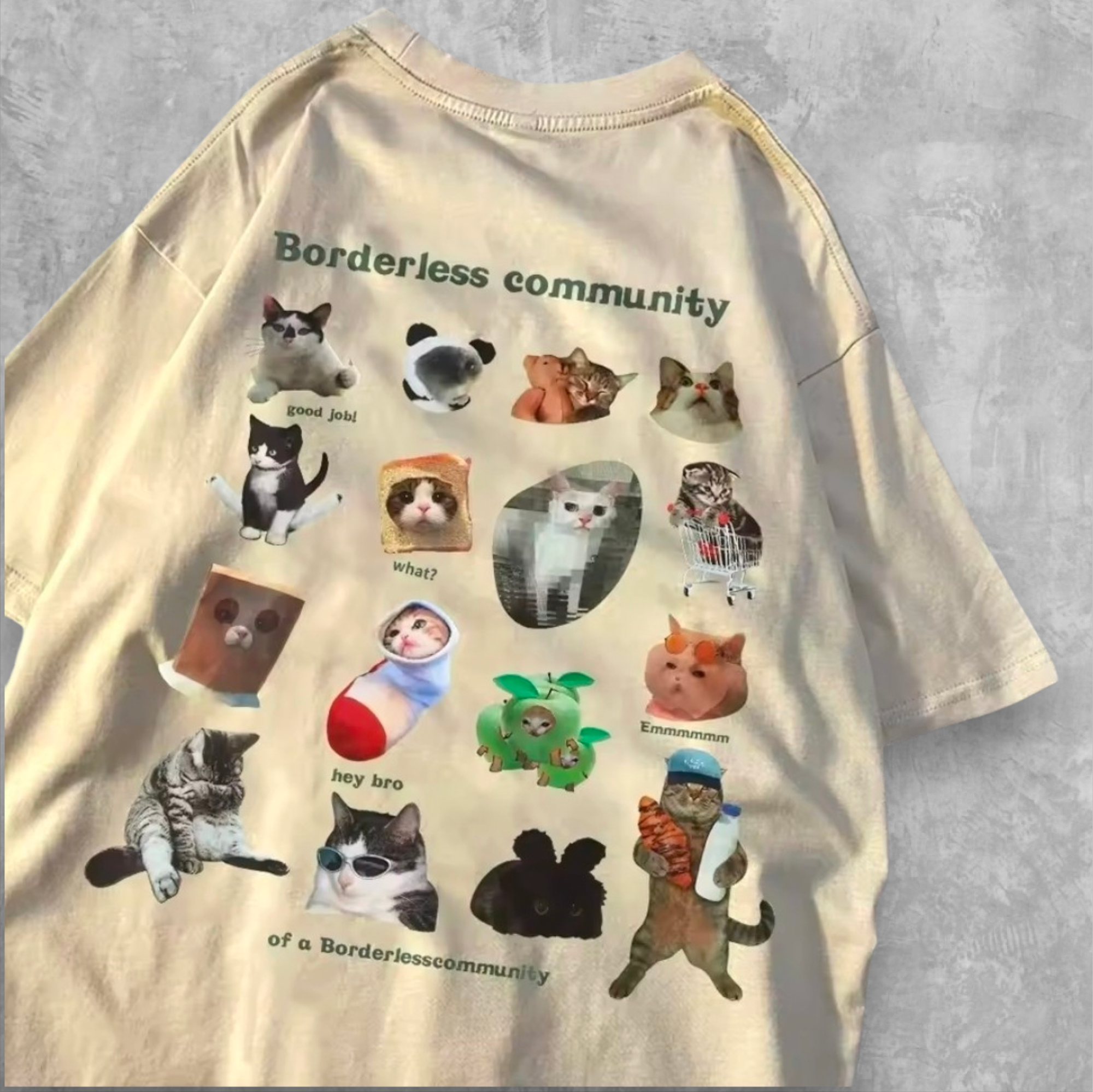 にゃんこがたくさんプリントされた可愛いTシャツです。