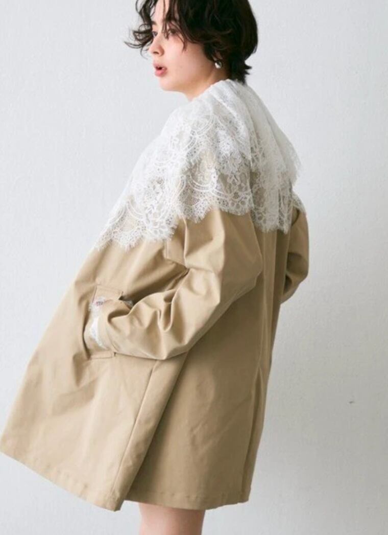 繊細なレースをたっぷりあしらったビッグカラーデザインが、上品な甘さを演出。