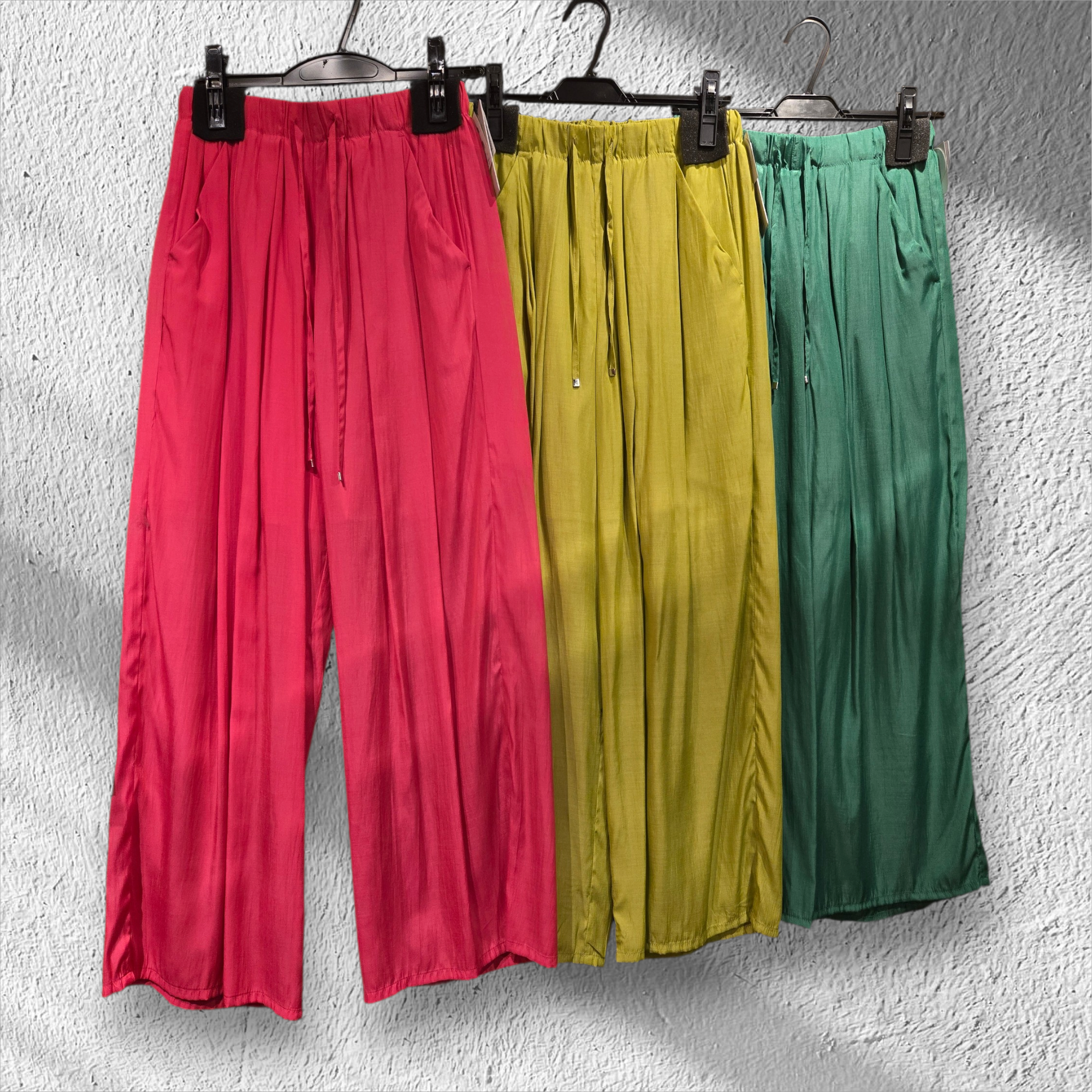ウエストゴムで、涼しくて発色のキレイなタックワイドパンツ。