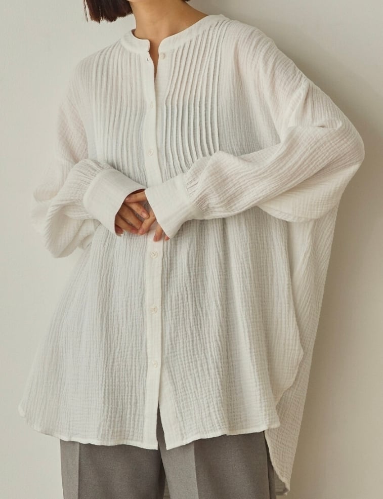 【ぶるち】1306 肌触り最高のド定番!絞り加工ダブルガーゼピンタックワイドシャツ