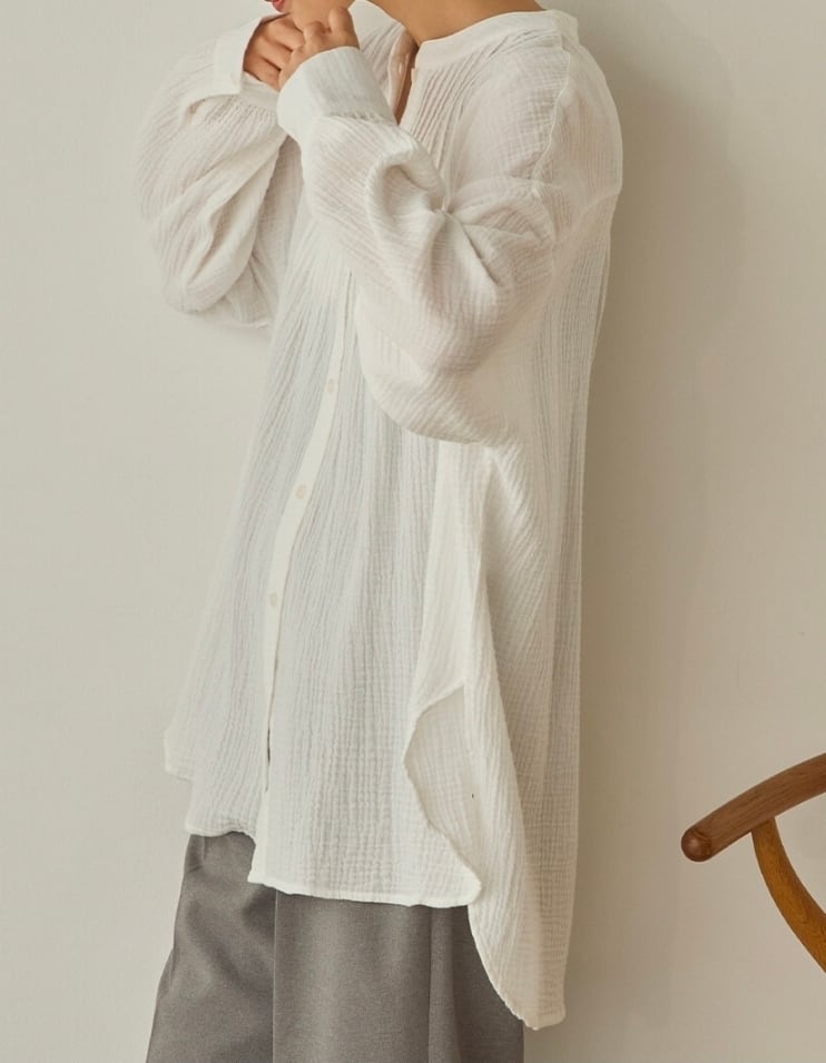 洗い加工を施したダブルガーゼ生地を使用し、柔らかな肌触りとナチュラルな風合いが