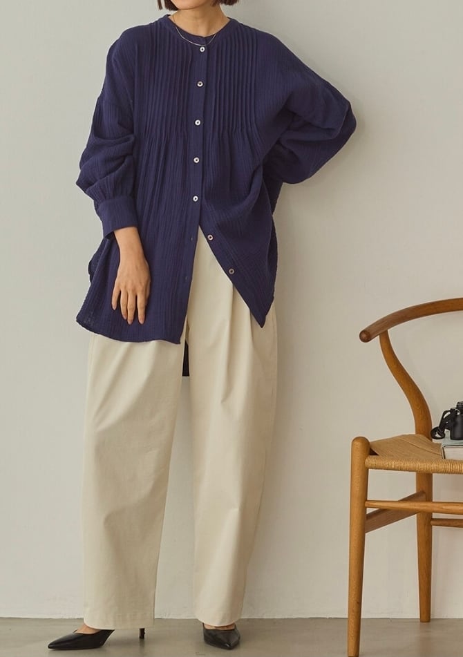 毎日のコーディネートに取り入れやすく、長く愛用できる大人のためのタックシャツです。