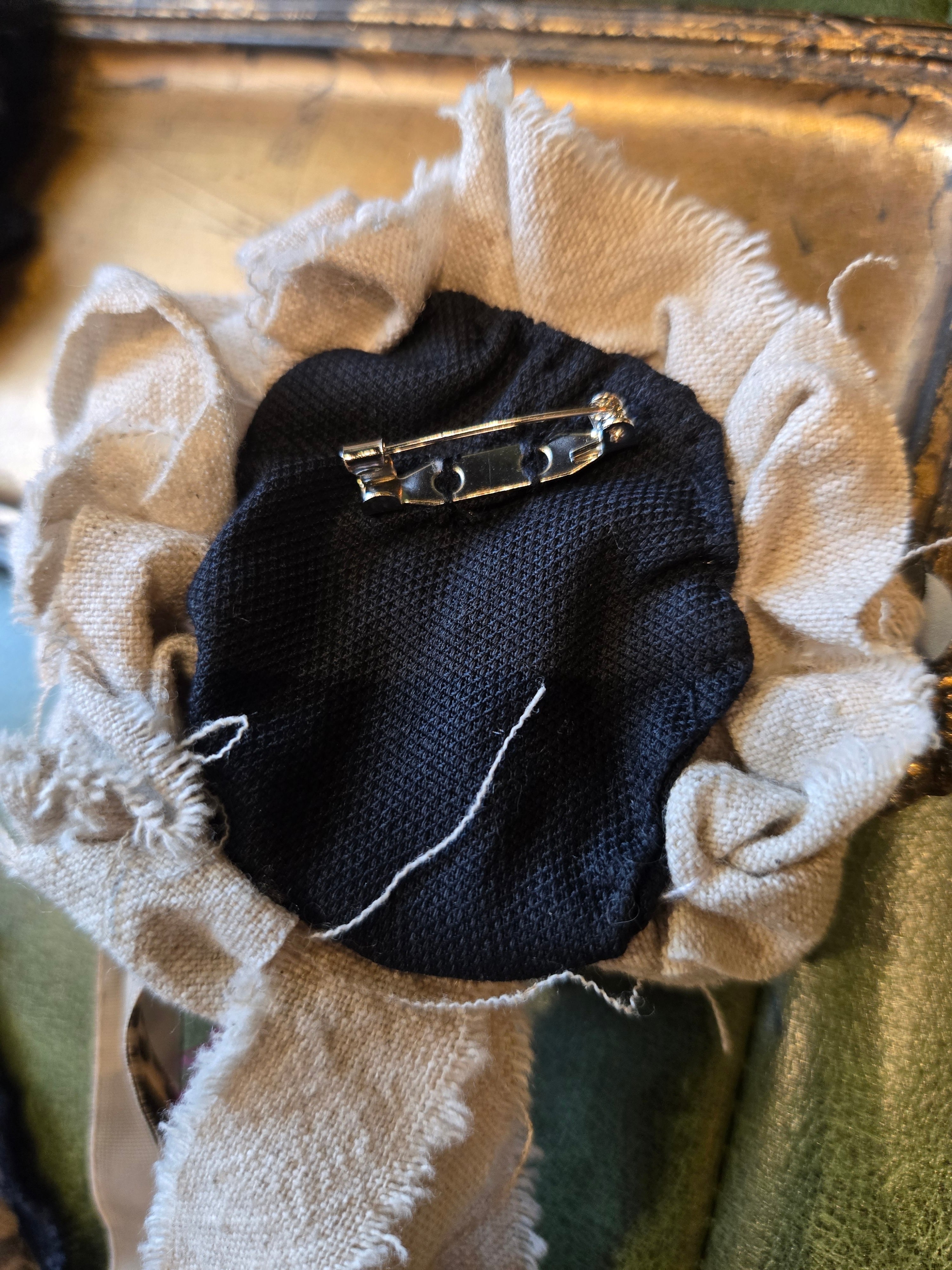 オーガニックシーチングリボンにデコレイトしたブローチ。