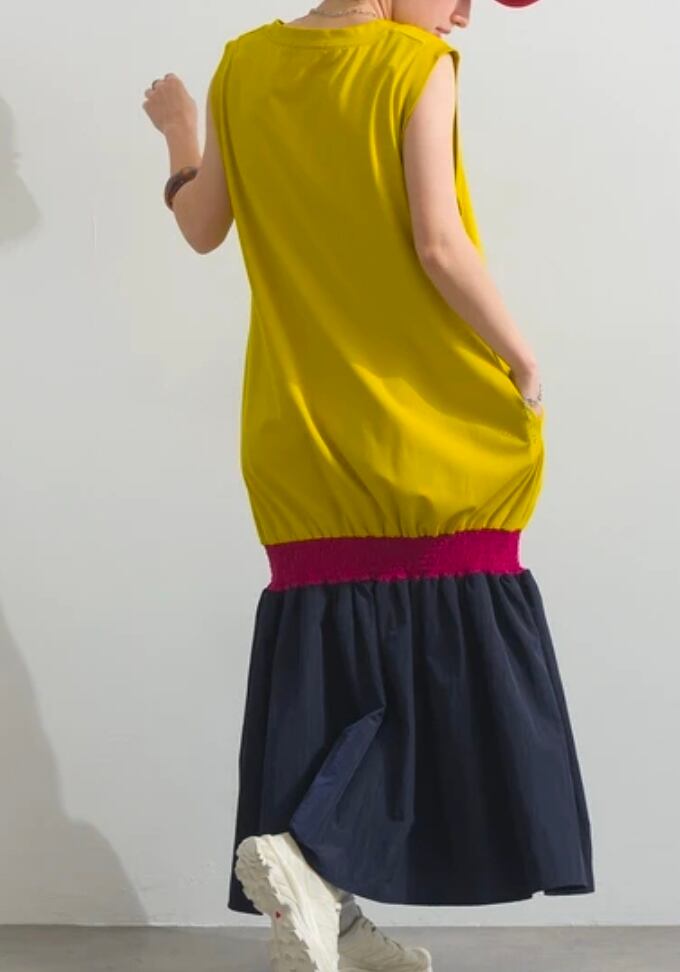 デザインは、ラフさと上品さを兼ね備えたマーメイドライン。深めのUネックとアームホールが、装いに心地よい「余白」と通気性をもたらします。膝上の切り替え部分には、伸縮性のあるシャーリングを施すことで、美しいシルエットを保ちながらも足捌きの良さを実現しました。地平線の移ろいを切り取ったようなカラーパレットが、旅先や日常のひとときを彩ります。