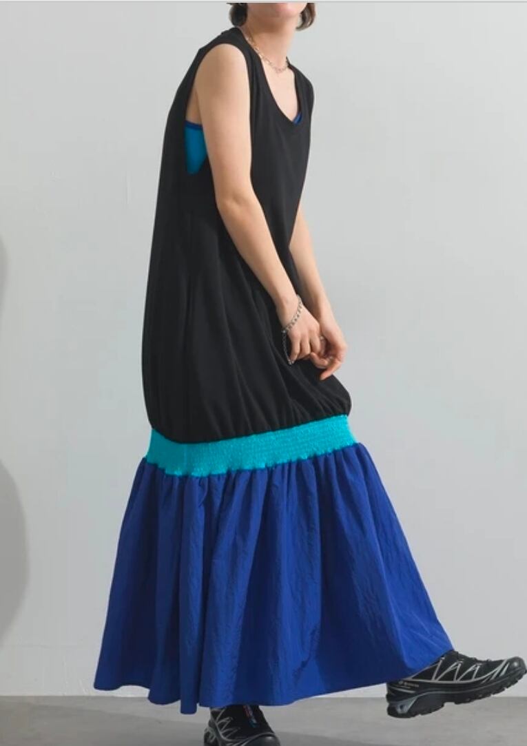 【ぶるち】異素材切替 レーヨン×ナイロンタフタラグーンワンピース