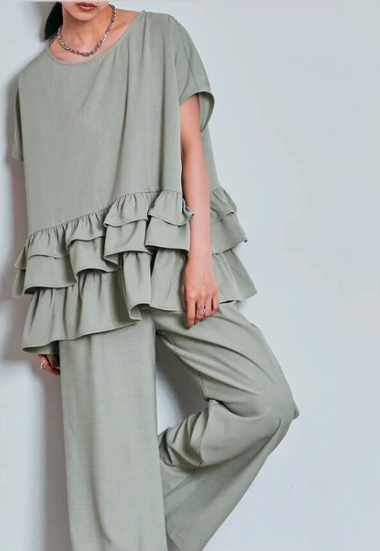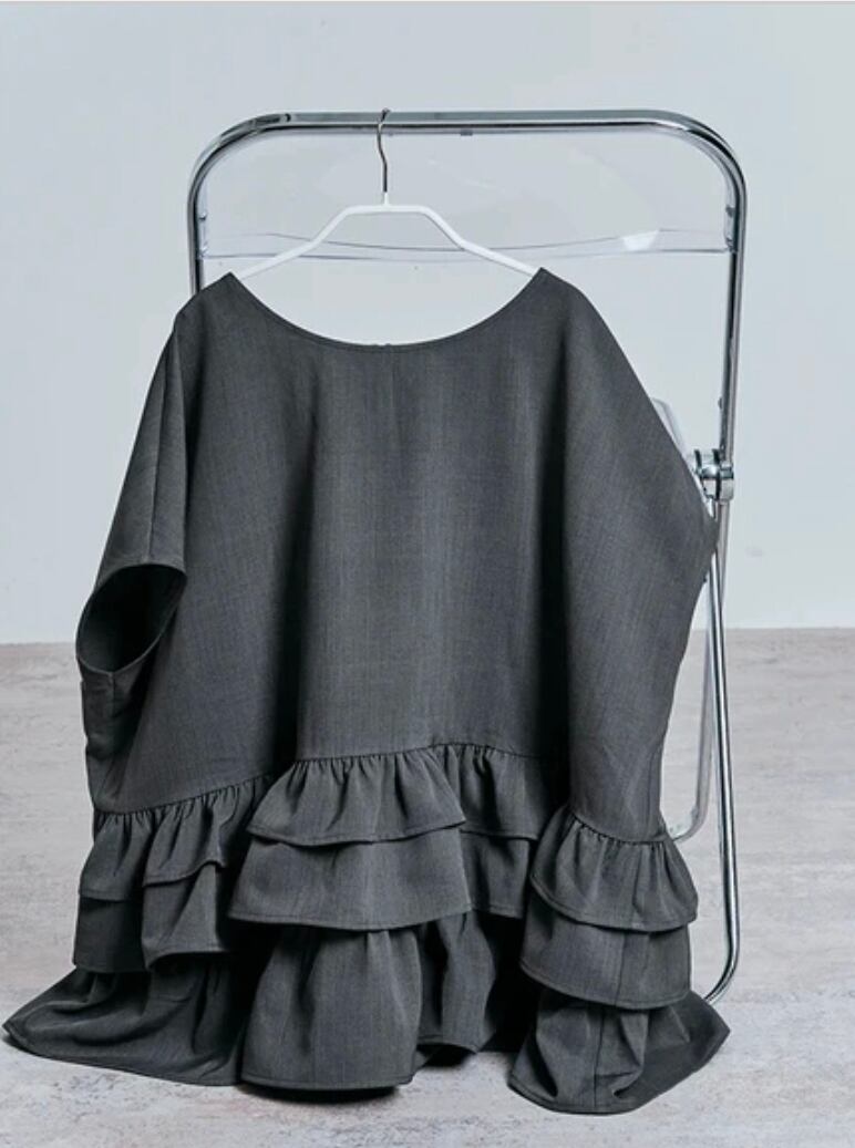 贅沢に重ねたティアードフリルがボリューミーな半袖トップス。