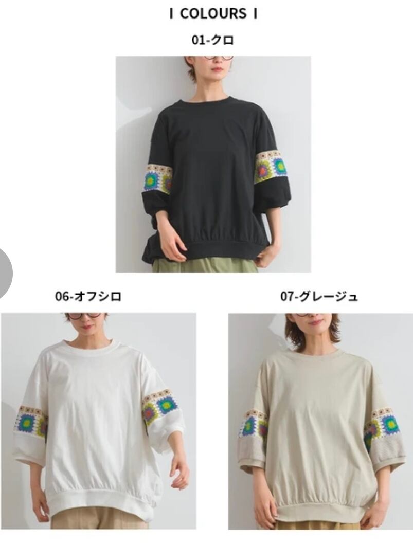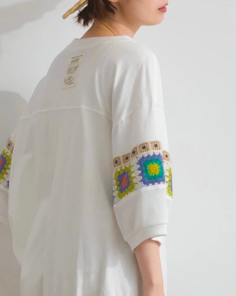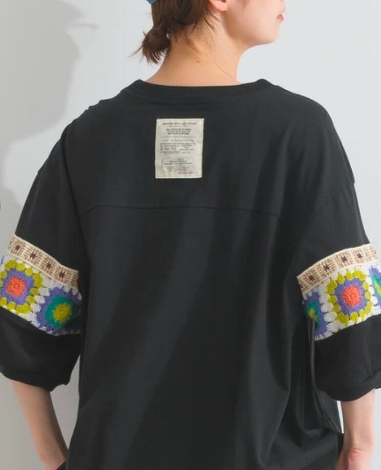 袖のクロシェモチーフデザインが印象的なカットソープルオーバー。