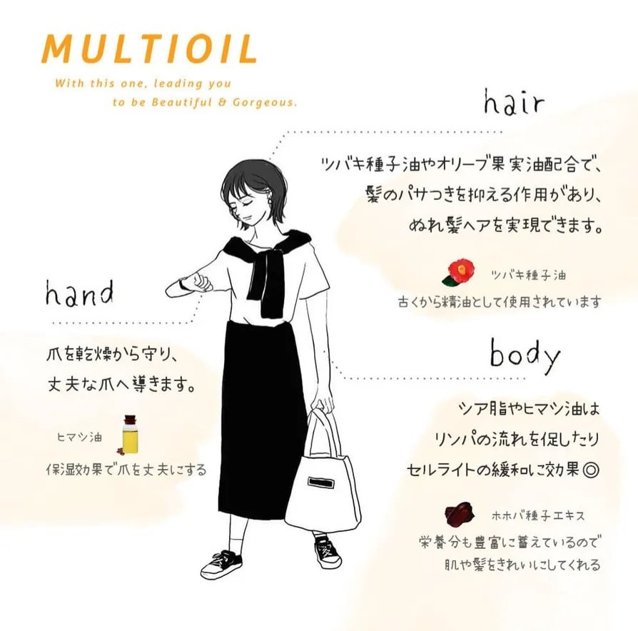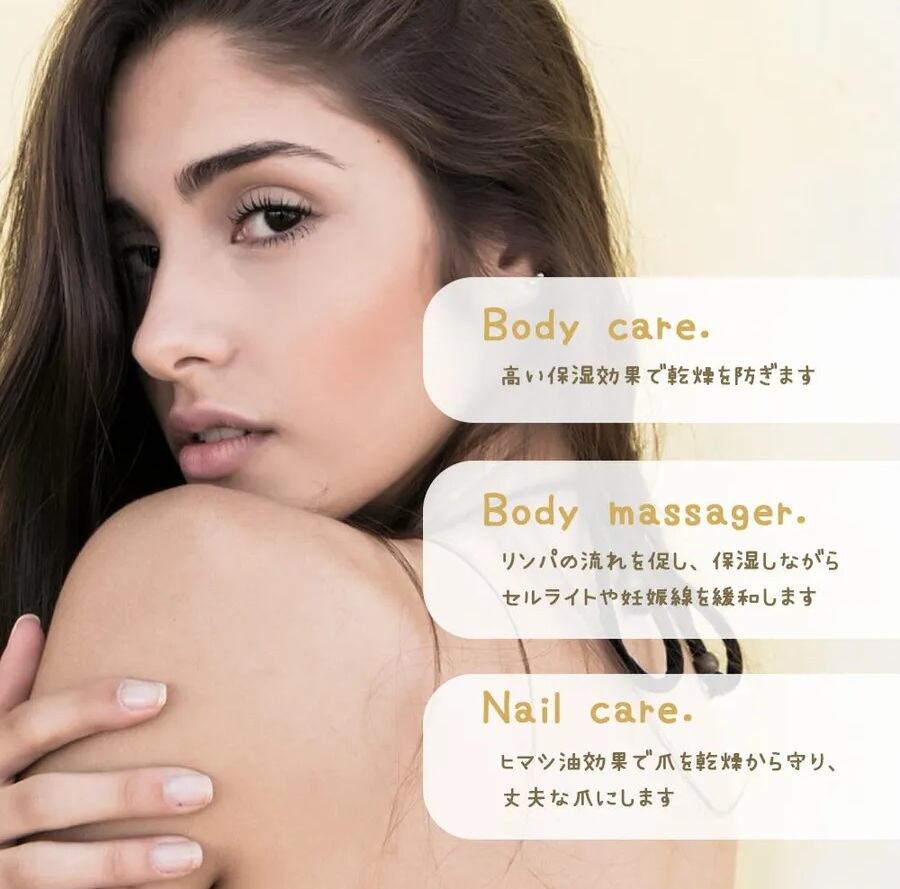 ●ボディの保湿・マッサージオイルとして肌をしっとり保湿します。また、マッサージ効果によりリンパの流れを促し、スッキリしなやかなボディへと導きます。