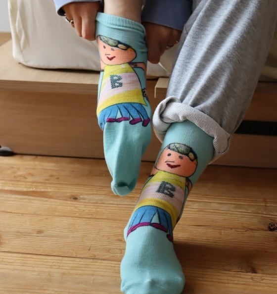 コラージュイラストをプリントしたソックスです。