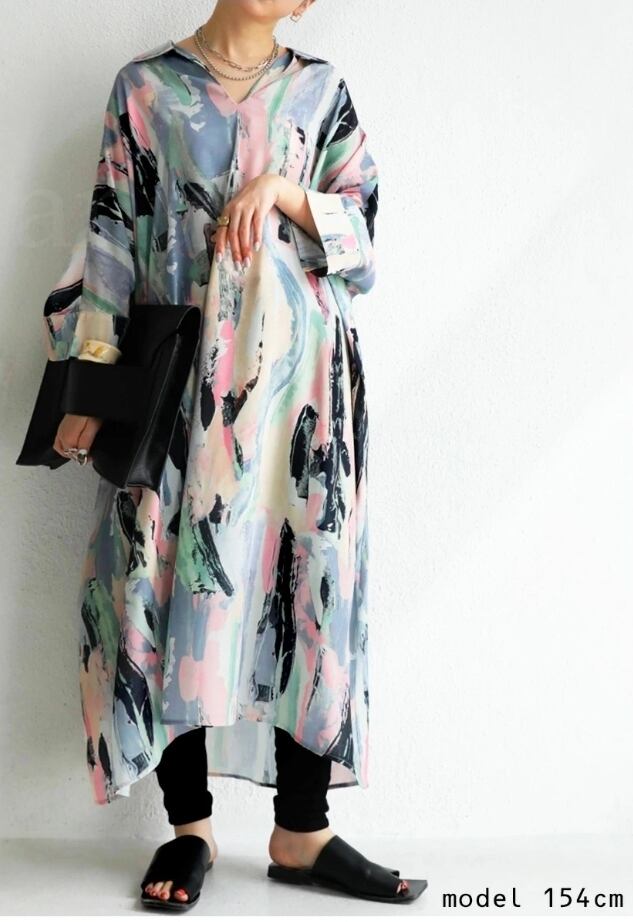 【ぶるち】 1352 水彩柄ワンピース