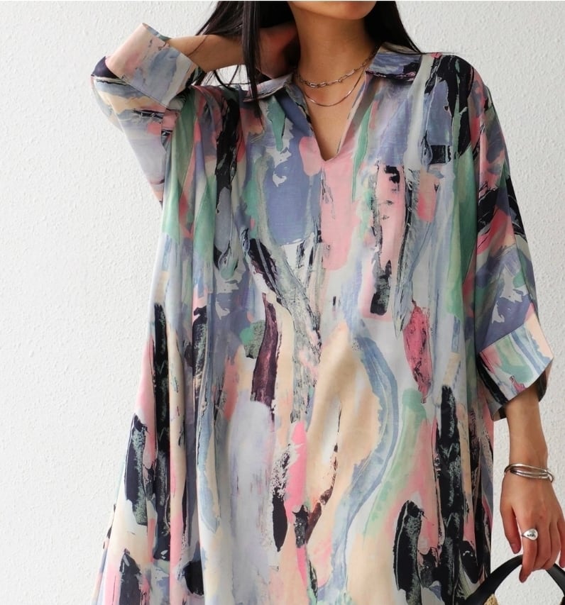 水彩をプリントしたような、ニュアンスたっぷりのアート柄な大人柄。