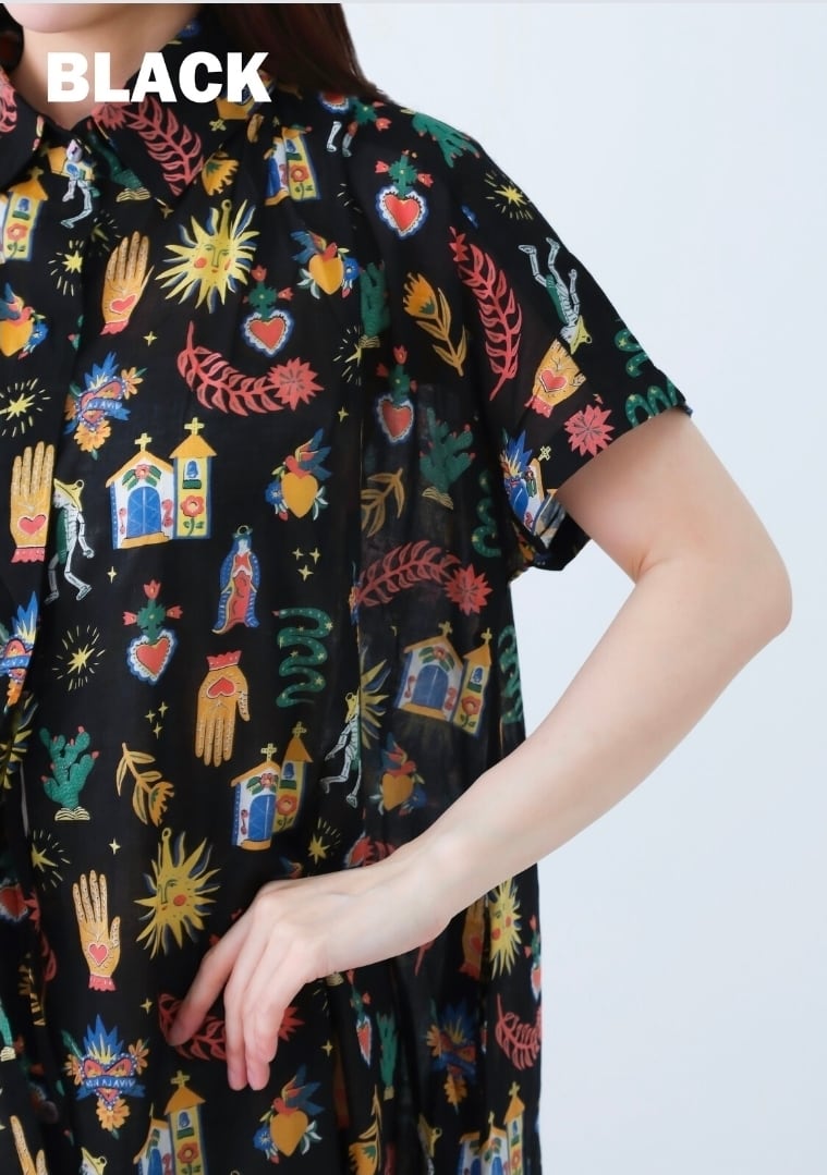 【ぶるち】 1362 ハッピー柄コットンボイルワンピース インド綿