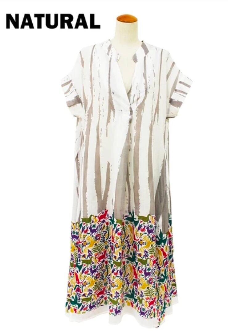 【ぶるち】 1363 動物柄ナチュラルコットンボイルワンピース