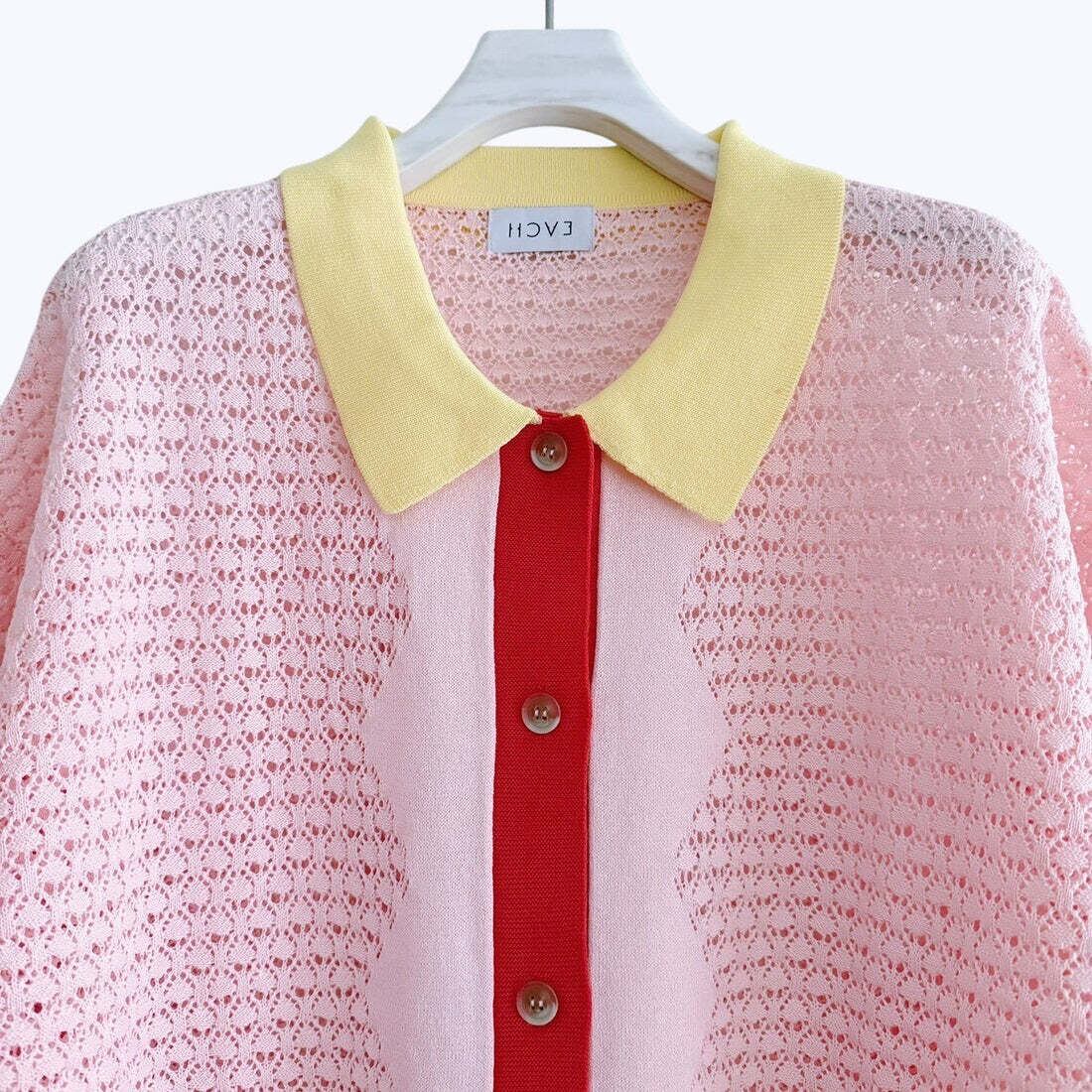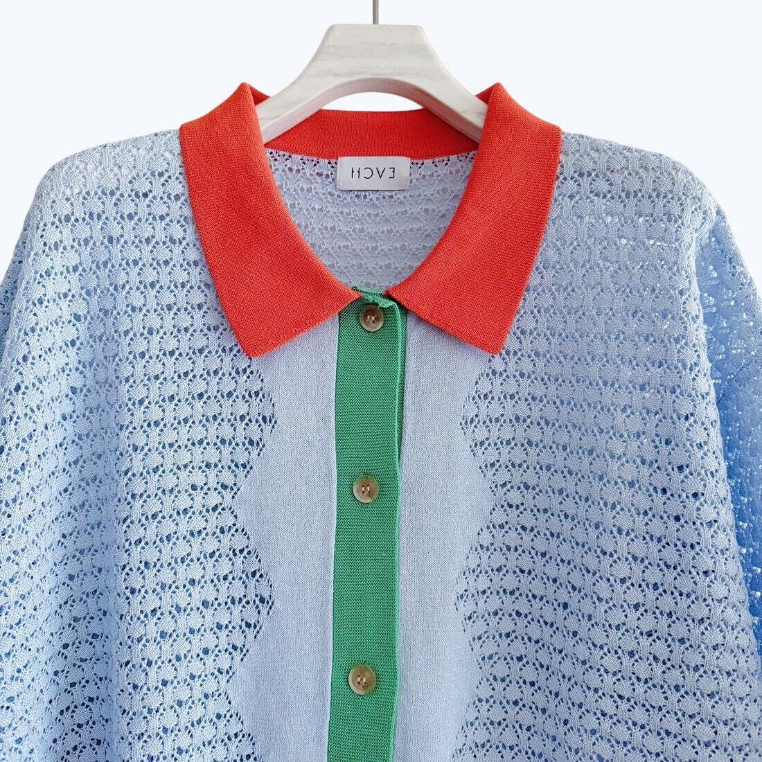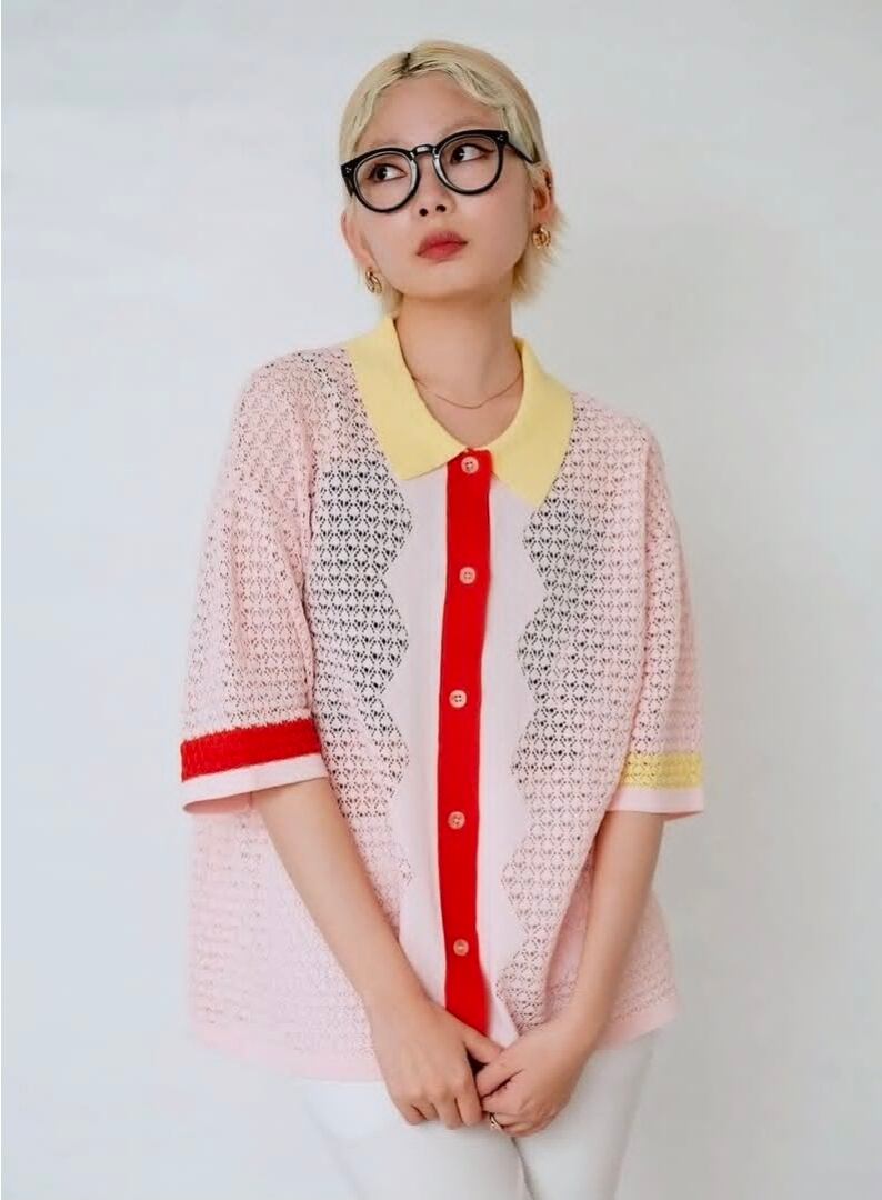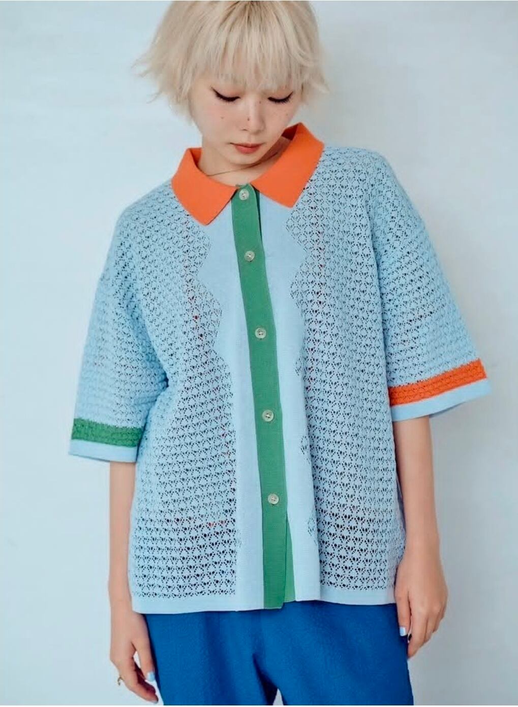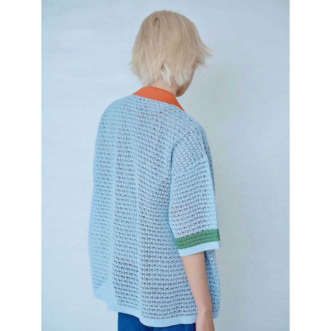 【ぶるち】 1373 HCAE◆COLOR BLOCK COLLAR OPENWORK KNIT TOP