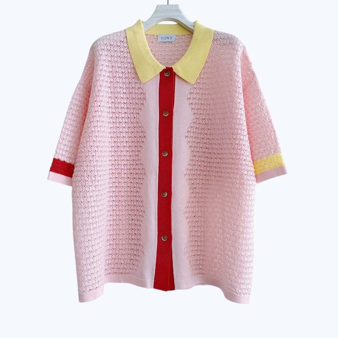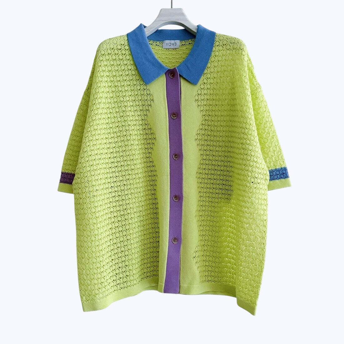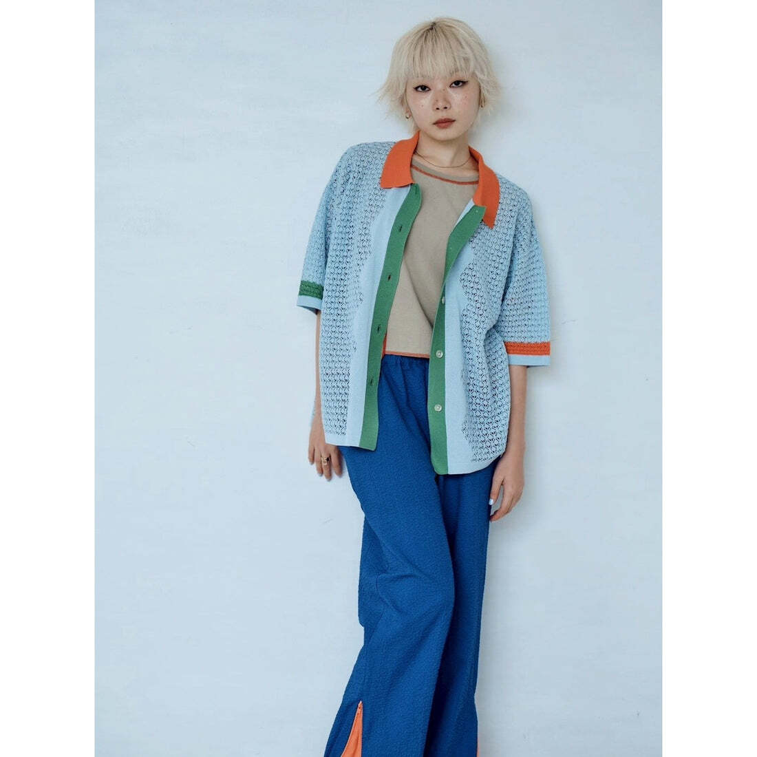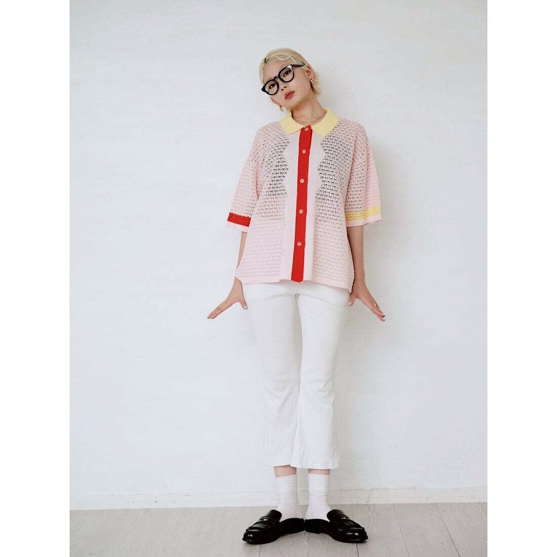 【ぶるち】 1373 HCAE◆COLOR BLOCK COLLAR OPENWORK KNIT TOP