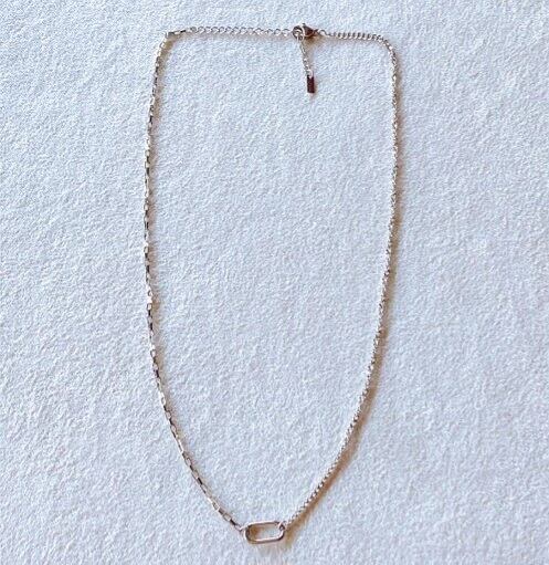 左右異なるチェーン素材が特徴的なデザインネックレスです