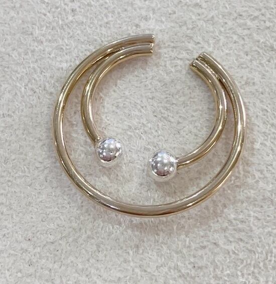 大きめデザインが魅力のダブルリングイヤカフ(片耳用)ゴールド